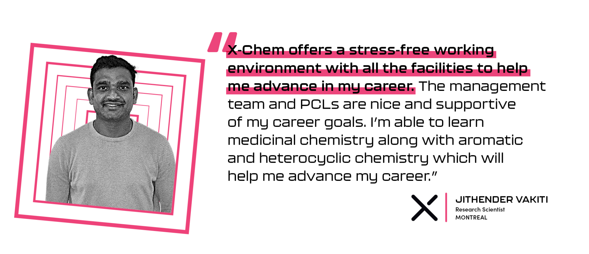 Whether you are just beginning your career or taking your next big step, X-Chem offers a place where curiosity is encouraged and growth is supported. We have meaningful roles for scientists at all levels, including internships that give early-career professionals the opportunity to contribute to real programs alongside experienced teams.